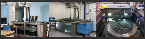 Supported Scanner Configurations Travelling bridge type scanners are suitable for inspection of single curvature parts (one bridge systems) or double curvature parts (two bridge systems). This configuration requires minimal floor space and permits use of a turntable for high throughput inspection of round structures. A removable immersion tank can be provided as required. Dual tower scanners are appropriate for scanning complex double curvature parts. A removable immersion tank can also be provided in this configuration. Flatbed systems are used for inspection of flat parts or parts of moderate curvature. These scanners are usually equipped with multiple squirters for productivity enhancement. Parts of complex shape can also be inspected by squirter systems using industrial robots. Features and Benefits • Fully integrated systems: All system components are designed, manufactured and tested by ScanMaster, ensuring smooth, reliable operation of the system as a whole • Scanning speeds of up to 1,000 mm/second •Simultaneous inspection in through transmission and pulse echo modes • Simultaneous inspection with linear and logarithmic amplifiers • Dual squirter, dual frequency features for high throughput • Easy part programming through intuitive Teach In tools, including import of CAD files such as CATIA • Advanced image analysis and processing tools • Adherence to Airbus and Boeing requirements • Packaged water systems with active flaw control, including storage, filtration and UV treatment • Optional turntable and part fixtures • Optional removable immersion tank (gantry and dual tower configurations)