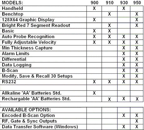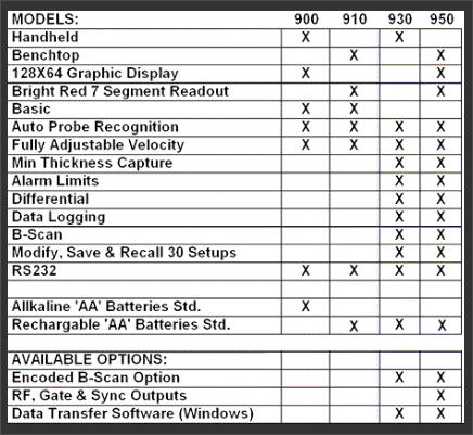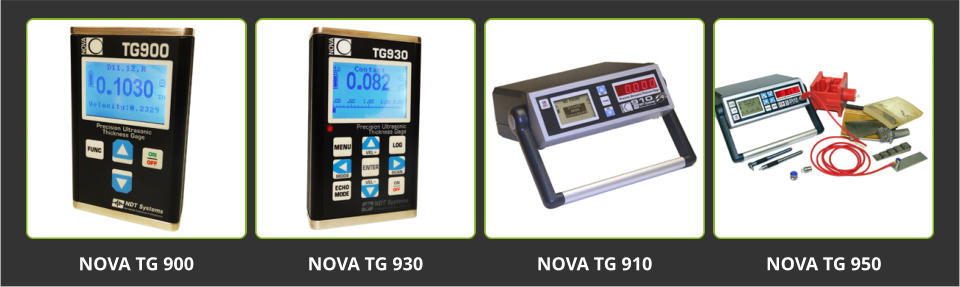 Nova TG 900, Nova TG 930, Nova TG 910, Nova TG 950 precision ultrasonic thickness testers Nova TG 900 Series Ultrasonic Thickness Meters | Features of each model.