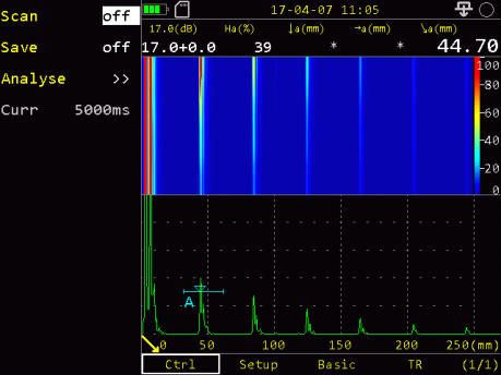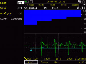 SIUI Smartor Highly Portable Digital Ultrasonic Flaw Detector & Ultrasonic Thickness Gauge Screenshot showing the Test Wizard SIUI Smartor Highly Portable Digital Ultrasonic Flaw Detector Screenshot showing the B-Scan Mode