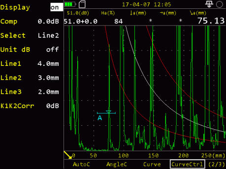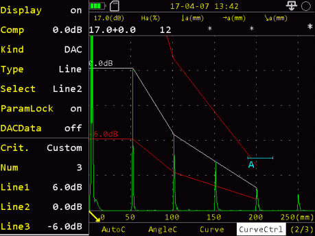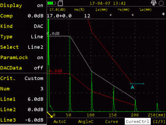 SIUI Smartor Highly Portable Digital Ultrasonic Flaw Detector Screenshot showing the DAC Curve Mode