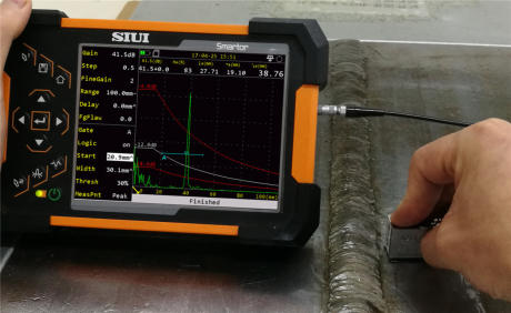 SIUI Smartor Highly Portable Digital Ultrasonic Flaw Detector Screenshot Testing Welds On-Site SIUI Smartor Highly Portable Digital Ultrasonic Flaw Detector Screenshot Testing an Angle Weld SIUI Smartor Highly Portable Digital Ultrasonic Flaw Detector Screenshot Testing a Flat Weld SIUI Smartor Highly Portable Digital Ultrasonic Flaw Detector Screenshot Testing a Pipe Weld