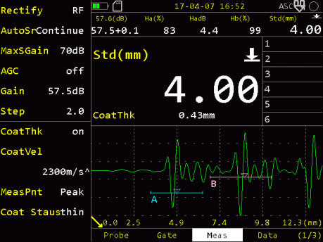 SIUI Smartor Digital Ultrasonic Thickness Gauge Screenshot Showing Through Coating Measurement