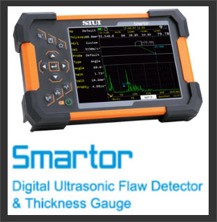 The SIUI Smartor is a combination of ultrasonic testing (UT) and ultrasonic thickness measurement (TG) The Smartor is available as either an Ultrasonic Thickness Gauge or an Ultrasonic Flaw Detector with the option to upgrade the software to include both in the same unit. Many other optional software upgrades are available to suit your requirements. Please contact us for further details and pricing. High IP rate: IP 66 Compact size: 198 (W)* 128 (H) *52 (L) mm Light weight: 0.9kg only, including battery 5.7" LCD with high resolution 640×480 pixels Adjustable pulse width, negative square wave transmission up to 350V. Operating frequency range: 0.5~20MHz, multiple steps of wide broadband and arrow-band for selection. Easy operation: only a few buttons, intuitive interface and logical menu, support right-hand and left-hand operation, outdoor mode. Multiple conventional UT functions -  Weld, plate and forging test wizards are available, which can guide users to perform setup easily and improve inspection efficiency. -  Peak memory, DAC curve, AGC (auto gain control), video record makes convenient and efficient flaw inspection. -  Optional functions: B-scan, TCG, probe spectral analysis, CSC (curved surface correction), weld simulation, crack height measurement, BEA (backwall echo attenuation), AWS D1.1/D1.5, API 5UE. Multiple thickness measurement functions -  A-scan thickness measurement(echo to echo mode, through coating measurement) -  Auto-search, velocity measurement, alarm and dataset management. -  Optional functions: coat thickness measurement, B-scan, multi- layer measurement, V-PATH, TDG and temperature compensation. System ports: encoder, VGA, SD card, USB EN12668-1: 2010/ASTME317(for UT) & EN15317-2007(for TG) compliant