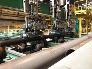Automated UT inspection of OCTG tubes using Phased Array with gantries: Using the FAAST-PA technology for OCTG seamless tube, the main purpose of this reference were to detect Longitudinal, Transversal plus all oblique, inner and outer flaws, the whole in real time to inspect 100% of the tube in addition to wall thickness measurement and lamination. To comply with such demand, Socomate International has supplied a 1D linear probe with Multibeam acquisition mode for lamination and wall thickness, plus 2D matrix probes with Multi-angle for all oblique flaw detection.
