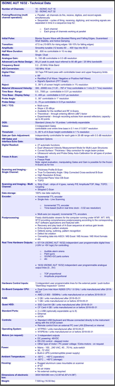The Sonotron ISonic 16/32 AUT is a Multi Channel Flaw Detectors for Automatic Ultrasonic Testing: Conventional Modality