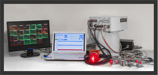 Sonotron ISonic 16/32 AUT Ultrasonic Multi Channel Flaw Detector for Automatic Ultrasonic Testing showing it in action using multiple channels. Sonotron ISonic 16/32 AUT Ultrasonic Multi Channel Flaw Detector for Automatic Ultrasonic Testing