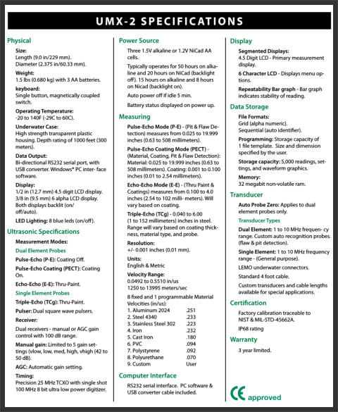 Cordex UT5000 Intrinsically safe Ultrasonic Thickness Gauge. Cordex UT5000 Intrinsically safe Ultrasonic Thickness Gauge Specifications Dakota Ultrasonics UMX-2 Underwater material and coating thickness gauge.
