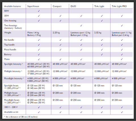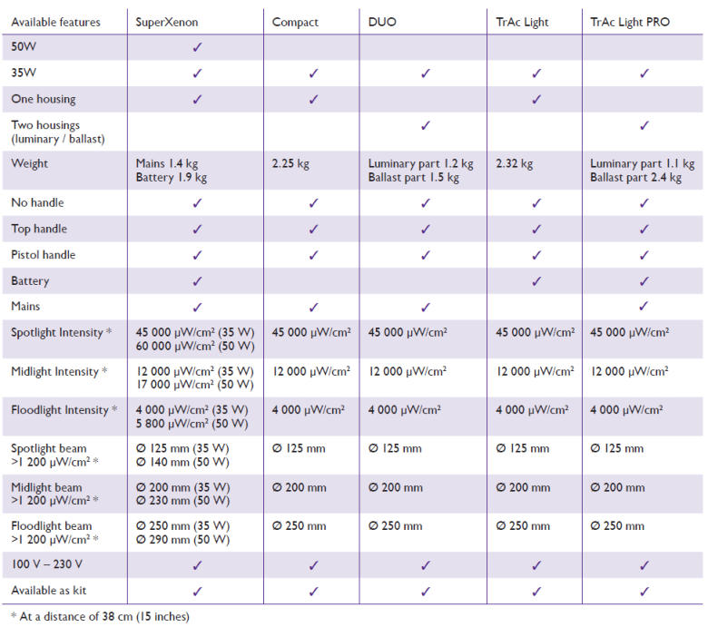 Floodlight • Distribution angle (beam) 45° • Intensity = >4,000 μW/cm2 (40W/m2) • Beam Ø >1,200µw/cm²  = 250mm • Visible Light = 2 Lux Figures at a distance of 38cm (15 inches) Widest beam but lowest intensity