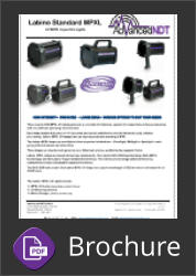 Labino Standard MPXL 35W UV Lights - Mains & Portable The Labino Standard MPXL Ultraviolet UV Inspection Lights offer many advantages over previous technology. Using a new type of low wattage bulb, they produce a higher UV output - yet generate little heat. This means that these black lights are safe to use in dark areas as they stay cool without the need for inbuilt fans which draw dirt into the lights. The Labino Standard MPXL ultra violet lights are sealed to IP65 allowing them to be safely splashed with water in Penetrant wash areas. Various styles of lamps are available operating from either mains or battery power supplies. Full UV intensity (4000 - 45,000µW/cm2, beam dependant) is achieved after about 5-15 seconds from start up, and can be powered down and restarted immediately with no wait times. The Labino MPXL series of UV blacklight lamps produce very high UV light intensities, creating extreme excitation of fluorescent material, which makes it possible to see things, in daylight and at great distances, that was impossible with former technology. Unaffected by surrounding magnetic fields and sealed to IP65 standards, in rugged aluminium housings, the Labino UV lights are designed for the industries where they are used. Different beam profiles - Floodlight, Midlight or Spotlight. (see below) Different case styles - To suit differing inspection requirements. (see below) The choice of a model depends on the conditions under which an operator is using these lamps. Does an inspection need to cover small or large areas? Does it involve difficult structures and therefore a lighter or more compact lamp is required? Do they simply need more output power or less power can suffice? We can accommodate all needs!