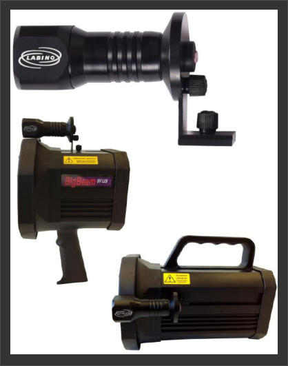 Labino Standard MPXL 35W UV Lights (135 Series & TrAc Series) used for many applications including NDT inspections, Leak Testing, Crime Scene Investigation (forensics) and many many more.