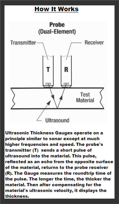 How Ultrasonic thickness testing works. Simple diagram and description.