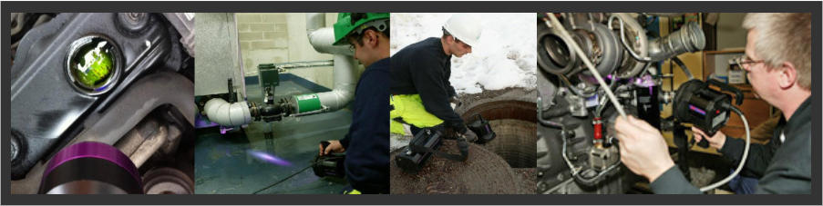 Leak Detection Use Labino Ultra Violet Lamps to detect leakage not visible to the human eye and identify leakage at an early stage. Leak detection using fluorescent tracer additive In order to detect fluid leaks and their sources quickly, UV (365nm) lights are used together with UV fluorescent tracer additives. This method is used by most manufacturers of petrol and diesel vehicle engines, earth moving equipment and fork lift trucks. Leakage is detected the following way. The UV fluorescent additive is mixed with a fluid system, e.g. water, oils, fuels, coolants and refrigerants, and then the equipment is operated as normal to allow the fluorescent additive to circulate throughout. If the leak occurs, the UV fluorescent tracer will run with the fluid and remain at the site of the leak. After that, all external surfaces such as pipework, joints, connectors, gasket seals and coils are inspected with the UV light. The leak and its flow path will glow bright yellow/green under the UV. Leak detection using LabinOil  LabinOil is a florescent dye and should be used with petroleum based lubricants. The fluorescence in the LabinOil is activated by irradiating with UV-light. Labino UVG2 Spotlight Torch is a powerful LED light source used together with LabinOil.  You do not need to clean the engine before or after the engine leakage test, nor do you have to empty the engine oil. You add the dye into the engine oil, start the engine to make the dye mix with the oil and circulate in the engine. Illuminate using the Labino UVG2 Spotlight to identify leakage. No special training is required when using the LabinOil kit.
